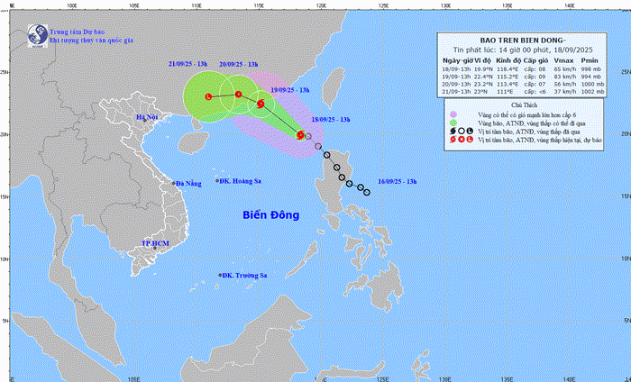 Dự báo diễn biến gió mạnh, mưa trong 24h tới, vùng biển từ Lâm Đồng đến TPHCM, khu vực Giữa và Nam Biển Đông (bao gồm đặc khu Trường Sa): gió Tây Nam cấp 6, giật cấp 7-8, biển động; sóng biển cao 2-3,5m. Vùng biển phía Đông khu vực Bắc Biển Đông có gió cấp 6-7, giật cấp 9, biển động mạnh; sóng biển cao 2-4m.